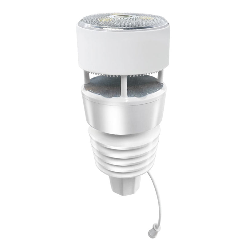 The outdoor sensor also measures temperature, humidity, wind speed, wind direction, rainfall, UV level and light intensity. It requires mounting on the top of a 1 inch pole to ensure accurate readings. To keep the top of the rain, UV and light sensor clear of debris we also include anti bird spikes which can be installed should this become a tempting spot for birds to perch.