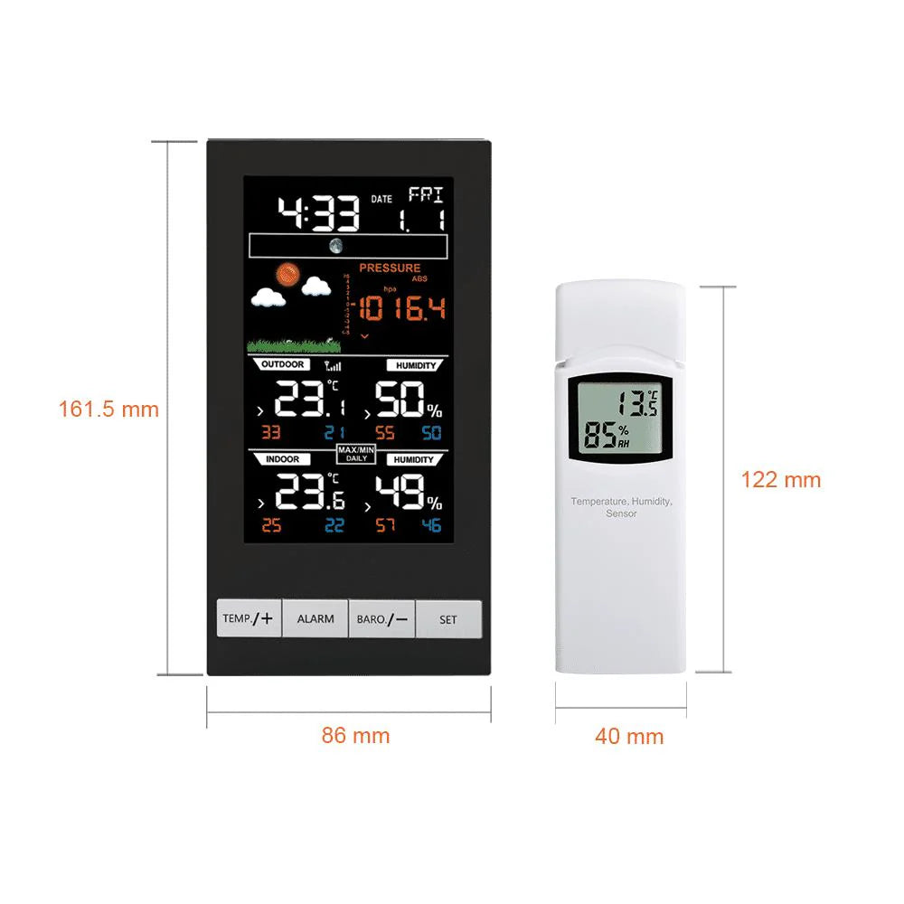 - Wireless outdoor temperature (°F or °C) and humidity (%RH)