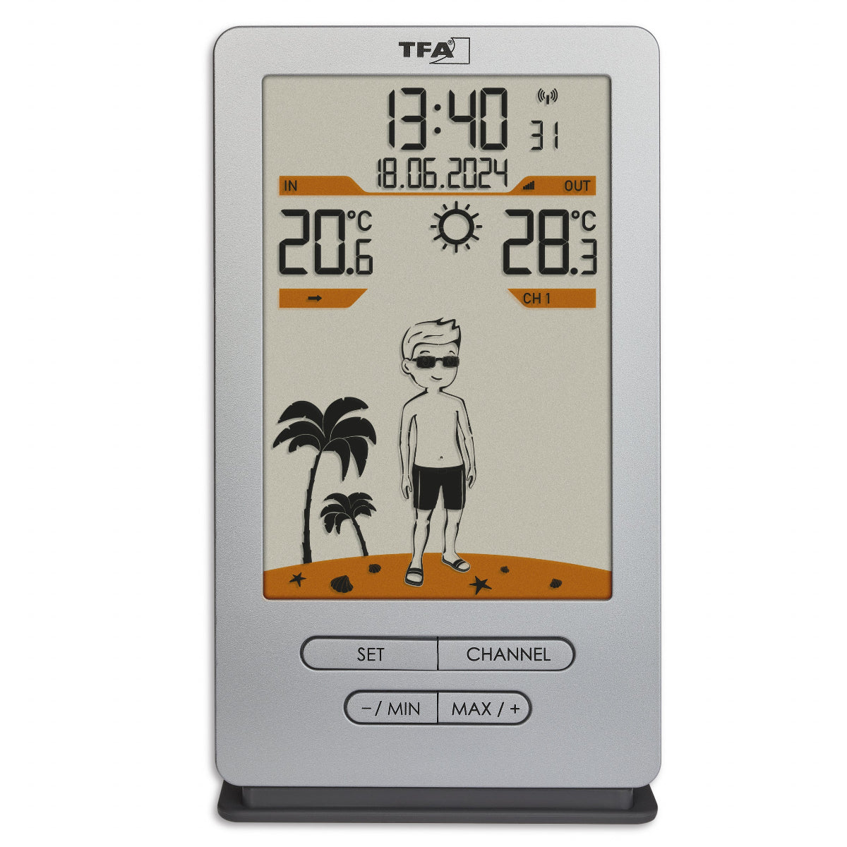 An additional feature for anyone who likes to observe temperature patterns over a longer period of time: the temperature station stores the maximum and minimum values with their time and date.